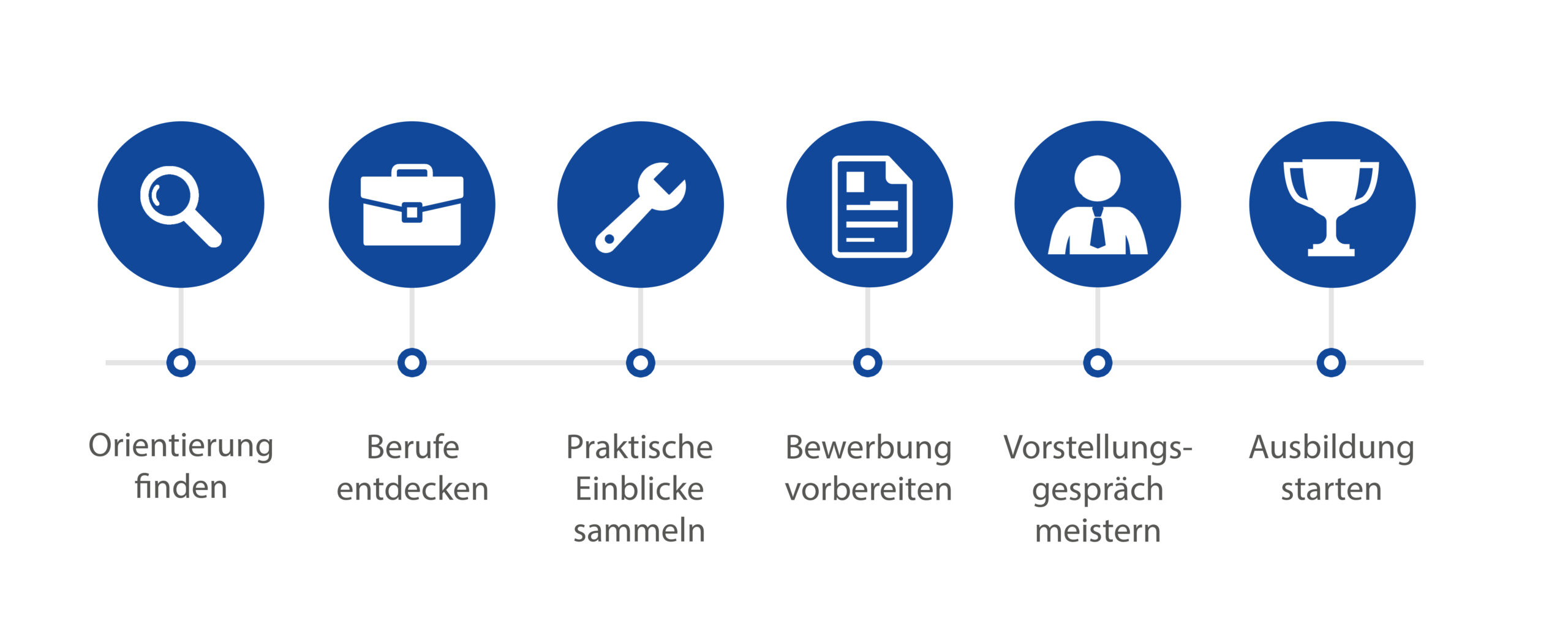 Wir begleiten Dich auf Deinem Weg von der Orientierung über das Entdecken spannender Berufe bis hin zum erfolgreichen Start in deine Ausbildung. Bei uns bekommst Du praxisnahe Einblicke, lernst, wie Du Dich optimal bewirbst, und wirst bestens auf Vorstellungsgespräche vorbereitet. So bist Du von Anfang an sicher und gut gerüstet für Deinen nächsten Schritt in die Arbeitswelt.